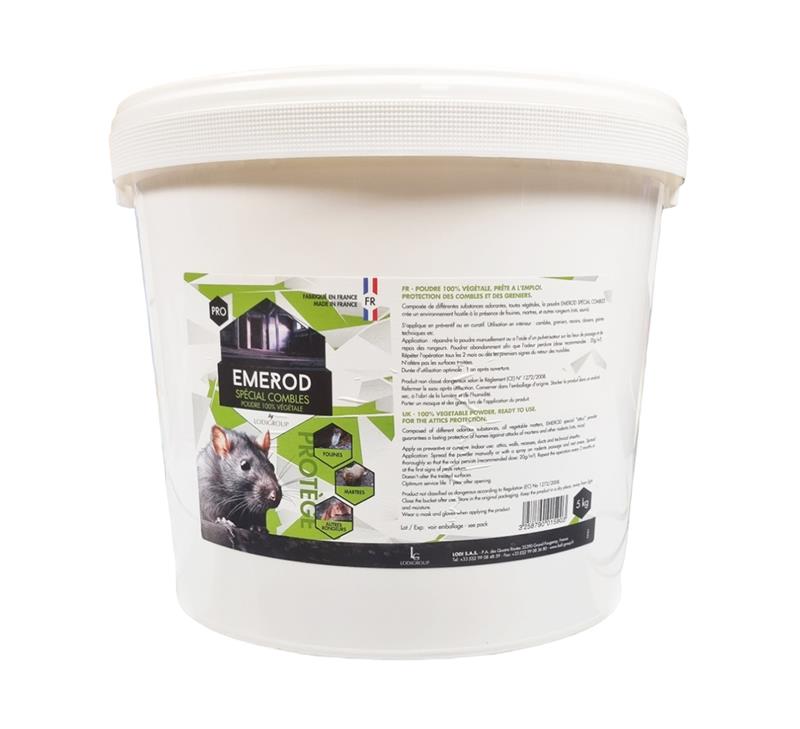 Pour une protection optimale, combinez l'application de la poudre avec l'obstruction des points d'entrée (trous dans la toiture, fissures) une fois que les nuisibles ont quitté les lieux. L'odeur rémanente d'EMEROD empêchera toute nouvelle tentative de colonisation.