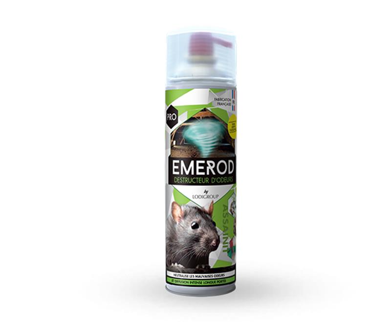'EMEROD Destructeur d'Odeurs est un aérosol professionnel conçu pour neutraliser les mauvaises odeurs les plus tenaces. Spécifiquement formulé pour l'après-dératisation, il agit au cœur de la source pour assainir l'air et supprimer les effluves liées à l'urine, aux déjections ou à la décomposition des rongeurs.