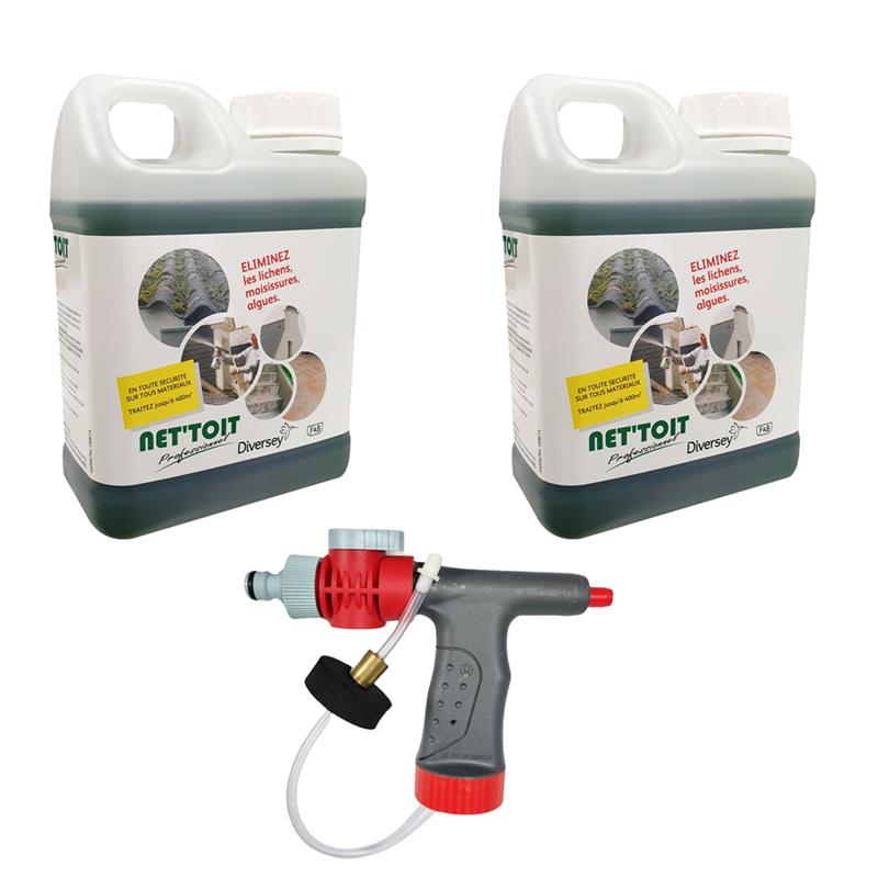 Le NET'TOIT Professionnel est un traitement démoussant puissant conçu pour éliminer radicalement les mousses, lichens, moisissures et algues sur tous types de supports. Utilisable sur les toitures, façades, serres et terrasses, ce produit offre une action curative longue durée sans altérer les matériaux. Sa formulation est si respectueuse des supports qu'elle est préconisée par le Centre de Recherche des Monuments Historiques (CRMH).