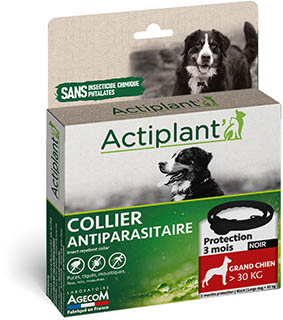 Les grands chiens, souvent amateurs de grands espaces, sont particulièrement exposés aux parasites externes. Le laboratoire Agecom propose une solution adaptée à leur morphologie et respectueuse de leur organisme : le collier Actiplant' Grand Chien.