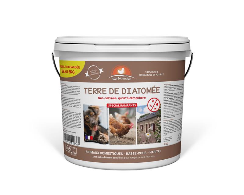 La Terre de Diatomée Le Fermier (format économique 5 kg) est un insecticide écologique puissant, non calciné et de qualité alimentaire. Extraite de carrières naturelles, elle offre une action mécanique foudroyante contre les parasites rampants et les poux rouges, tout en servant de complément pour lutter contre le parasitisme interne de vos animaux.