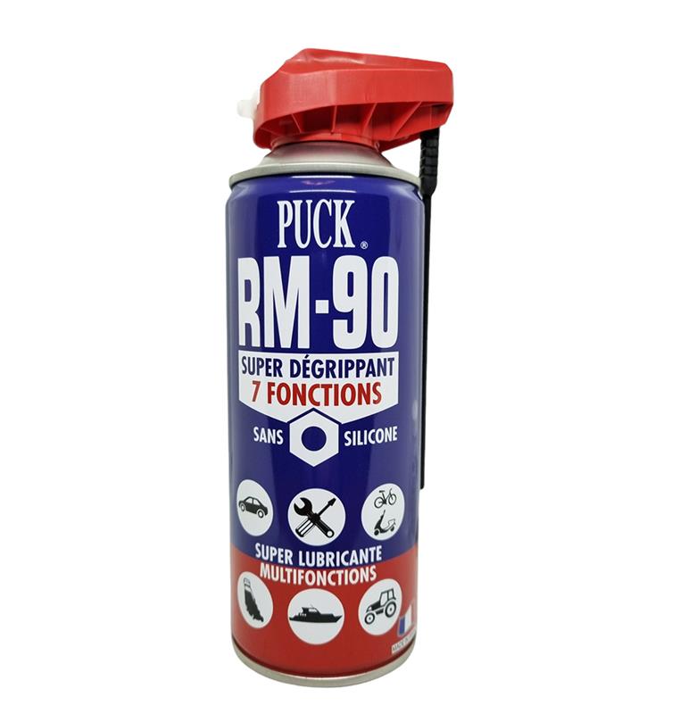 Le RM90 Super Dégrippant de la marque PUCK est un aérosol multi-fonctions "7 en 1" indispensable pour la maintenance.