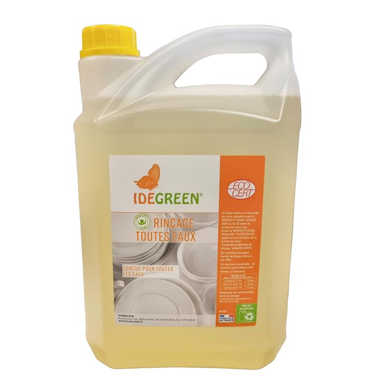 Rince, respecte la brillance de la vaisselle, 99% des ingrédients sont d'origine végétale ou minérale. Produit ecocert à usage professionnel, sans VLEP réglementaire