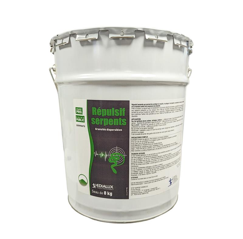 Le Répulsif Serpents en seau de 8 kg est un biocide haute performance conçu pour l'éloignement des serpents, lézards et orvets en extérieur. Sous forme de granulés prêts à l'emploi, il agit immédiatement sur les sens olfactifs et gustatifs des reptiles pour les inciter à quitter la zone protégée. Sa formule rémanente résiste à l'eau et se réactive naturellement sous l'effet de l'humidité.