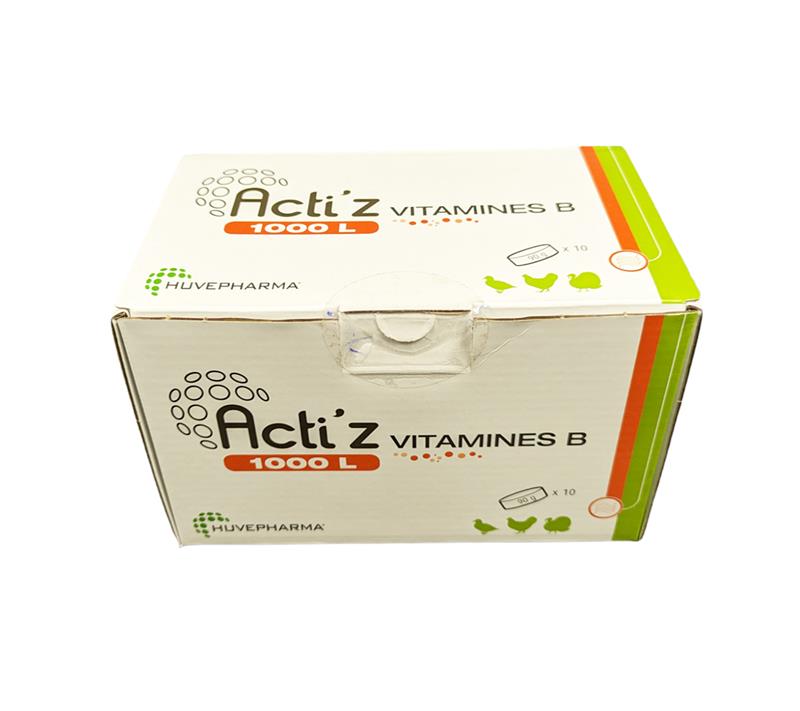 Acti’Z Vitamine B Huvépharma est un complément alimentaire effervescent pour volailles et gibiers d’élevage, formulé pour prévenir les carences en vitamines B.