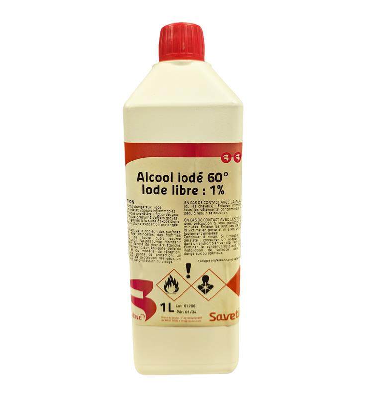 - Alcool 60°, Iode libre 1%