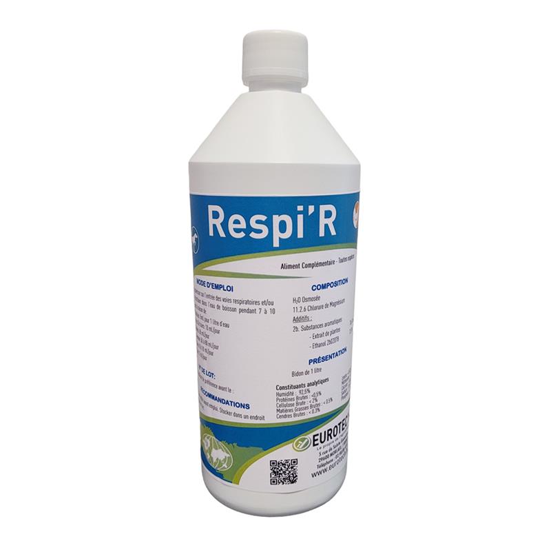 Complément alimentaire liquide pour animaux, ( volailles, chevaux, porc, chien, chat ) qui permet l'amélioration des fonctions du système respiratoire.