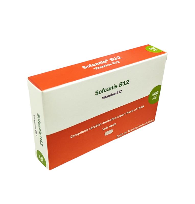 Le Sofcanis B12 est un complément nutritionnel qui aide à restaurer les réserves hépatiques en vitamine B12 chez le chien, le chat et le coq. Ses comprimés sécables aromatisés sont faciles à administrer et bien tolérés, même chez les animaux fragiles ou convalescents.