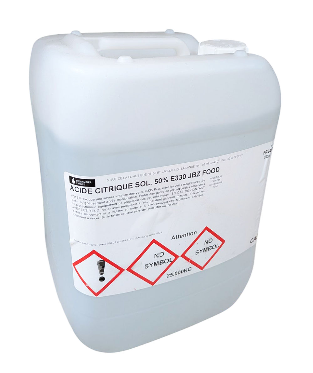 L'Acide Citrique Solution 50% est un acidifiant liquide de haute pureté, certifié Qualité Alimentaire (E330).