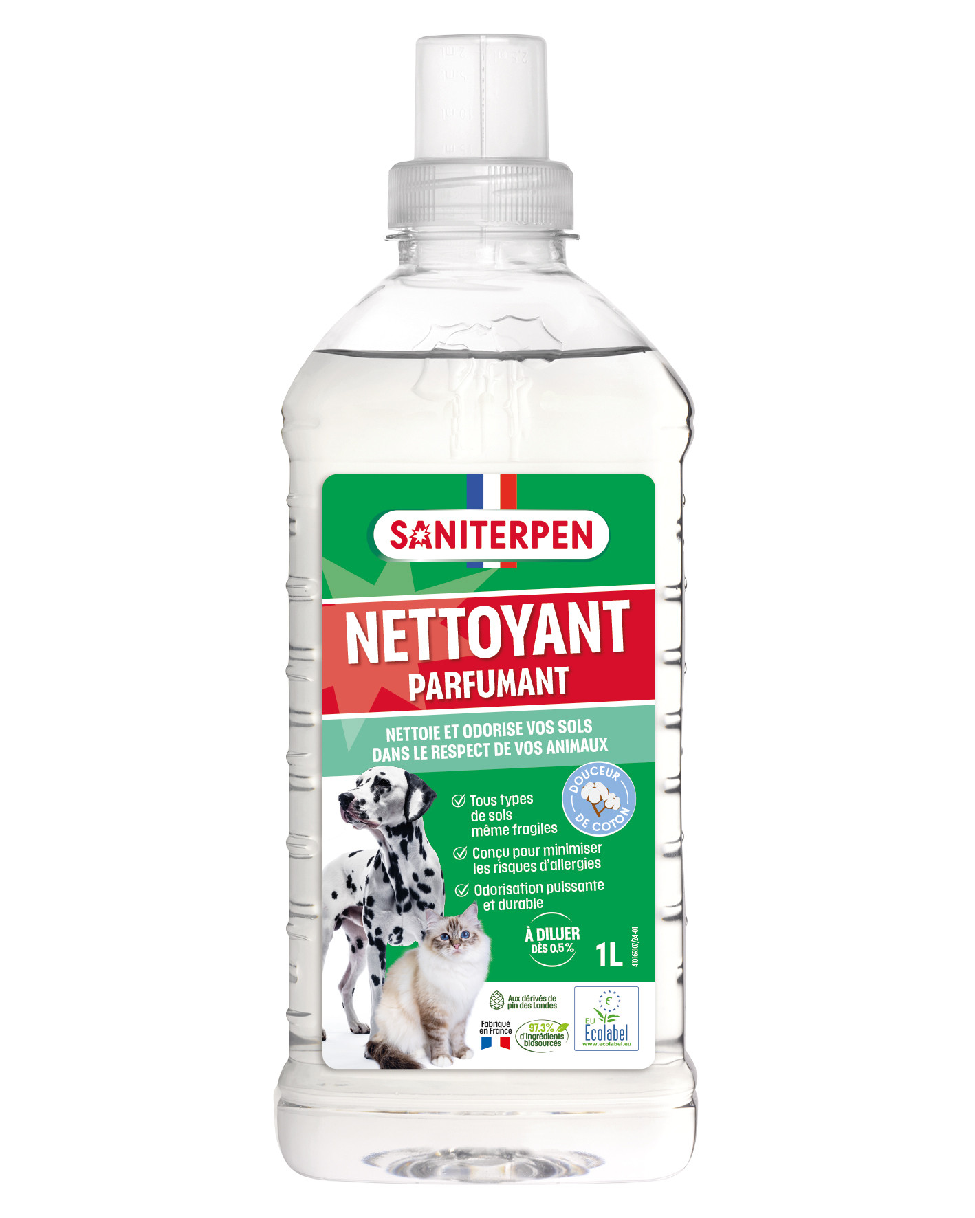 SANITERPEN Nettoyant Parfumant Douceur de Coton nettoie tous types de sols même fragiles et parfume votre intérieur d'une douce odeur de coton.