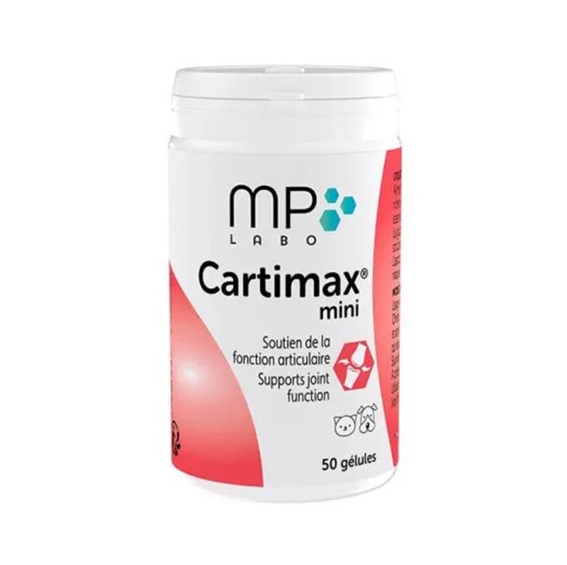 Cartimax Mini est la version spécialement dosée pour les chats et les petits chiens (< 10 kg) du célèbre chondroprotecteur de MP Labo. Ce complément alimentaire en boîte de 50 gélules associe la glucosamine aux plantes apaisantes (Harpagophytum, Reine des Prés) pour soutenir la mobilité, limiter la dégradation du cartilage et soulager les douleurs articulaires de manière naturelle