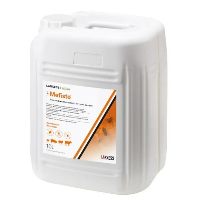 Le Mefisto 5 L est une solution ultra-polyvalente conçue pour simplifier les protocoles d'hygiène en élevage. Ce produit 2-en-1 agit simultanément comme désinfectant (virucide, bactéricide, levuricide) et comme insecticide puissant à base de Perméthrine. Il permet d'éliminer les pathogènes tout en luttant durablement contre les mouches, les ténébrions et les poux rouges.