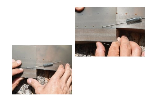 Préparation : Percez ou utilisez les encoches pour fixer le ressort de tension. Collez la mousse d'étanchéité (non fournie avec la bande seule) sur la partie inférieure.
