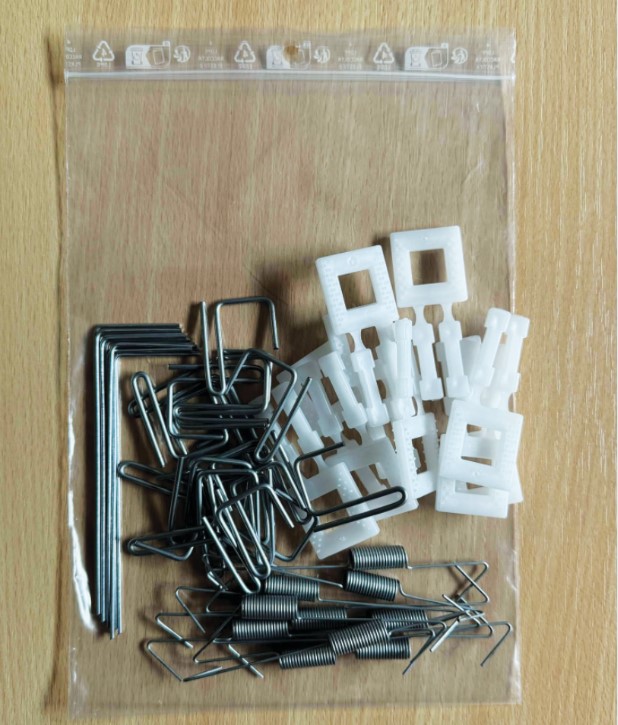 Ce Sachet d'Accessoires contient toutes les petites pièces métalliques et plastiques nécessaires au montage ou à la réparation des pièges écologiques Trapperpillar. Composé de 50 pièces au total (ressorts, crochets, épingles, attaches), ce kit permet d'équiper ou de remettre à neuf jusqu'à 10 pièges. C'est le complément indispensable pour les professionnels utilisant la bande collerette au rouleau ou pour remplacer des pièces perdues lors du démontage.