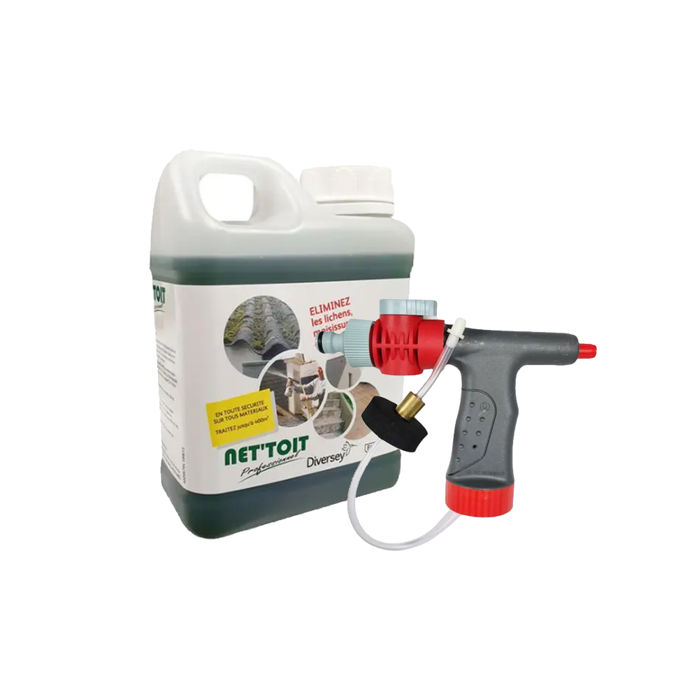 Le NET'TOIT professionnel est un produit démoussant très puissant à action curative et préventive. Rendement exceptionnel grâce à une formulation synergique à forte teneur en matières actives.
