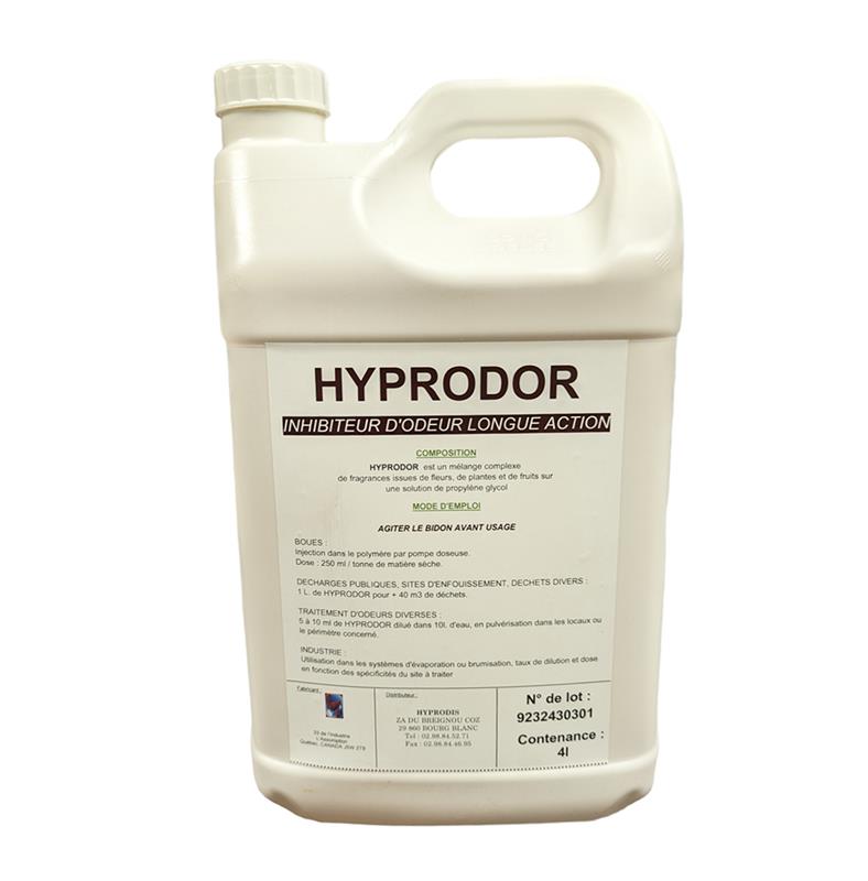 TRAITEMENT D'ODEURS DIVERSES : 5 à 10 ml de HYPRODOR dilué dans 10l. d'eau, en pulvérisation dans les locaux ou le périmètre concerné.
