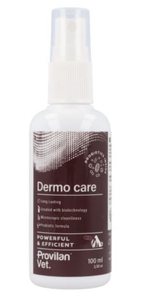 Le Provilan Vet. Dermo Care est un soin cutané probiotique conçu pour apaiser les irritations, favoriser la régénération de la peau et prévenir les infections chez les chiens, chats et autres animaux.