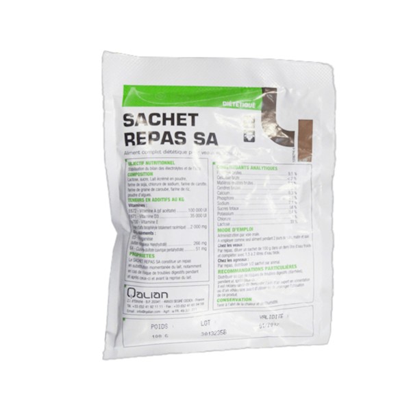 Peut-on mélanger le sachet directement au lait ? Non, le Sachet Repas SA est conçu pour être un substitut momentané. Il doit être dilué dans de l'eau tiède pour permettre le repos du système digestif vis-à-vis des protéines de lait.