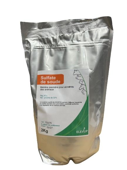 Le Sulfate de soude 2 kg Elevup est une matière première utilisée en alimentation animale pour garantir un apport en sodium, indispensable au bon fonctionnement de l’organisme.