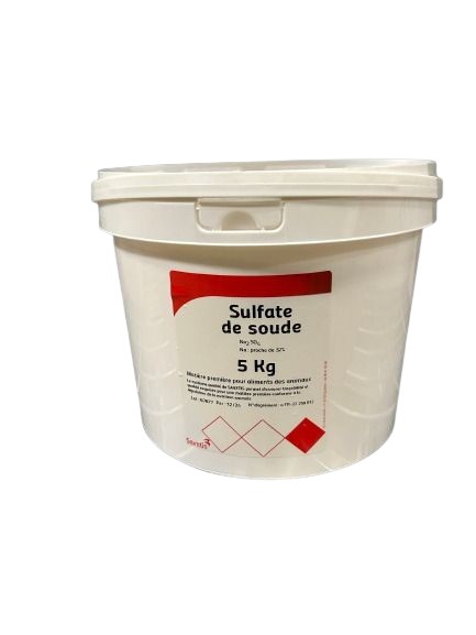 Le sulfate de soude 5 kg est une matière première pour aliments animaux, riche en sodium (32 %), favorisant l’équilibre électrolytique et la performance d’élevage.