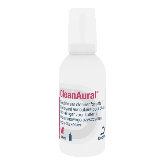 CleanAural Chat 50 ml du laboratoire Dechra est un nettoyant auriculaire doux et efficace, spécialement conçu pour l’entretien régulier des oreilles des chats.