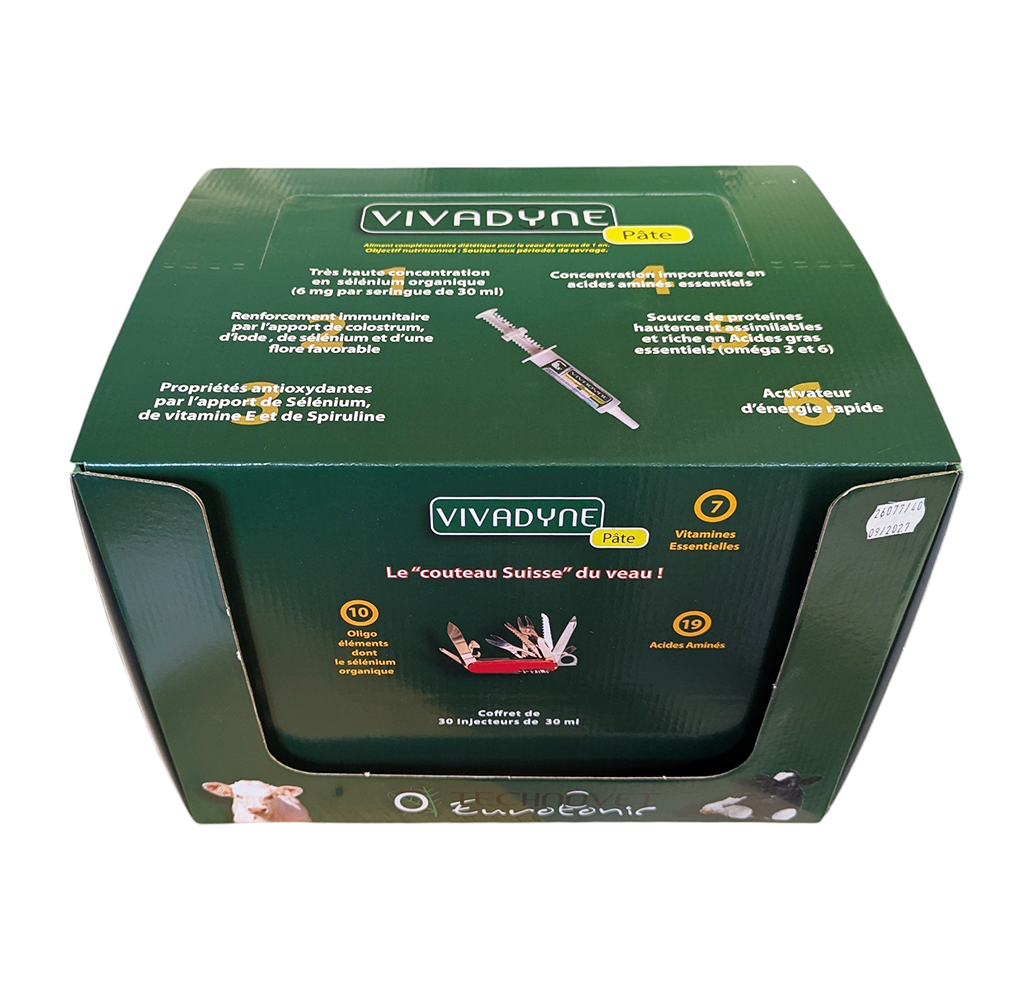 La Vivadyne Pâte Seringue 30 x 30 ml de Savetis est un stimulant ruminal et métabolique conçu pour les bovins adultes en perte d’appétit, après vêlage ou toute période de fatigue.