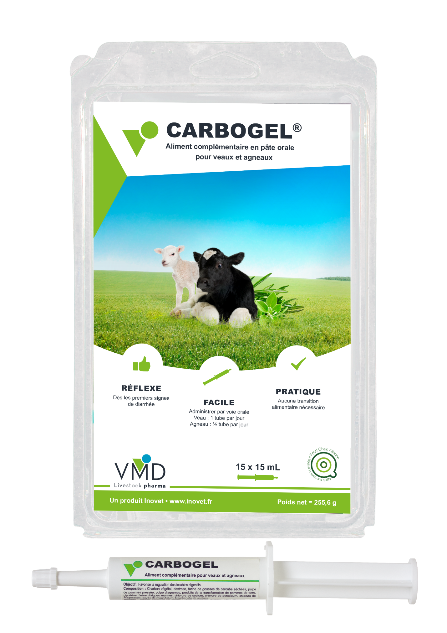 CARBOGEL est un aliment complémentaire sous forme de pâte orale, spécifiquement formulé pour réguler les troubles digestifs des veaux et agneaux. Sa formule unique à base de charbon végétal aide à stabiliser l'équilibre intestinal lors d'épisodes de diarrhée. Pratique et prêt à l'emploi, il offre une efficacité visible dès 6 à 10 heures après l'administration, sans nécessiter de transition alimentaire.