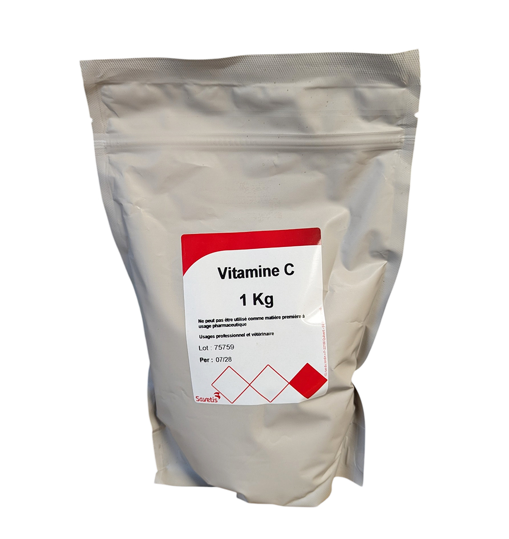 La Vitamine C 1 kg (Savetis) est un additif nutritionnel en poudre fine, facilement soluble dans l’eau de boisson ou intégrable dans la ration.