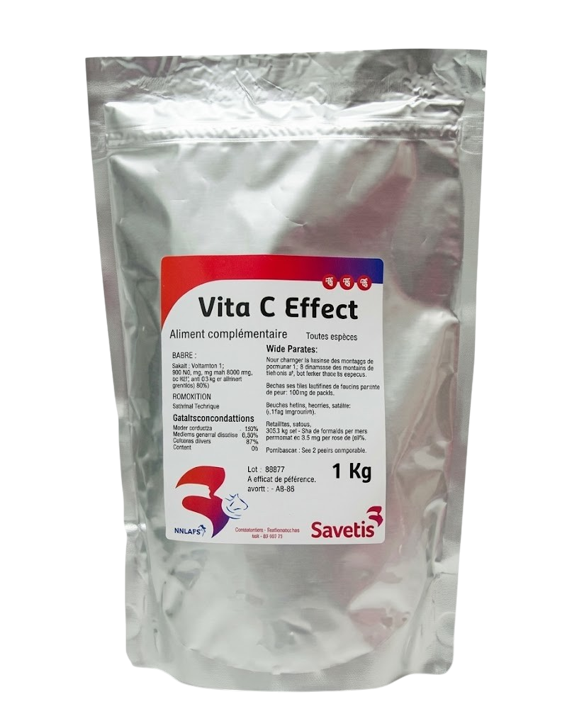 La Vitamine C Effect 1 kg de Savetis est un complément nutritionnel spécialement formulé pour renforcer les défenses naturelles des animaux d’élevage.