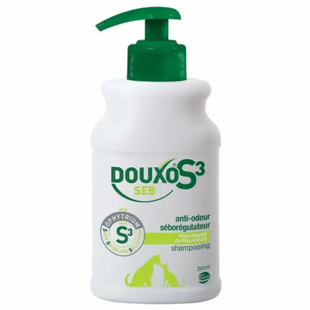 Conçu pour les animaux sujets aux pellicules grasses, odeurs de peau et surproduction de sébum, le Douxo® S3 Seb Shampooing 200 ml nettoie en douceur tout en restaurer l’équilibre cutané.