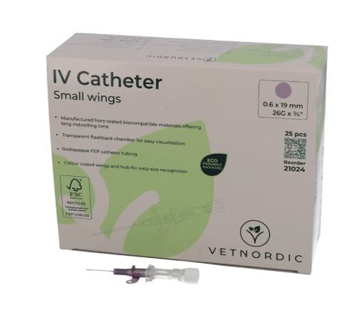 Le Cathéter IV Vetnordic 26G (Violet) est un dispositif médical de haute précision conçu pour les accès veineux les plus délicats chez les petits animaux ou les nouveaux-nés. Équipé de petites ailes pour un encombrement réduit, il est fabriqué en FEP radio-opaque, garantissant une excellente biocompatibilité et un maintien en veine sécurisé jusqu'à 72 heures.