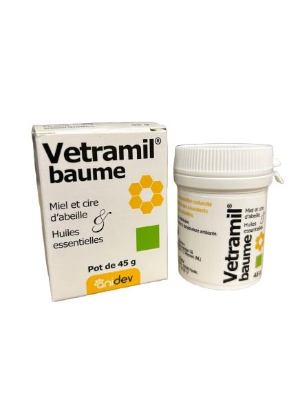 Vetramil Baume est un soin naturel formulé à base de miel de qualité médicale, de cire d’abeille et d’huiles essentielles sélectionnées.