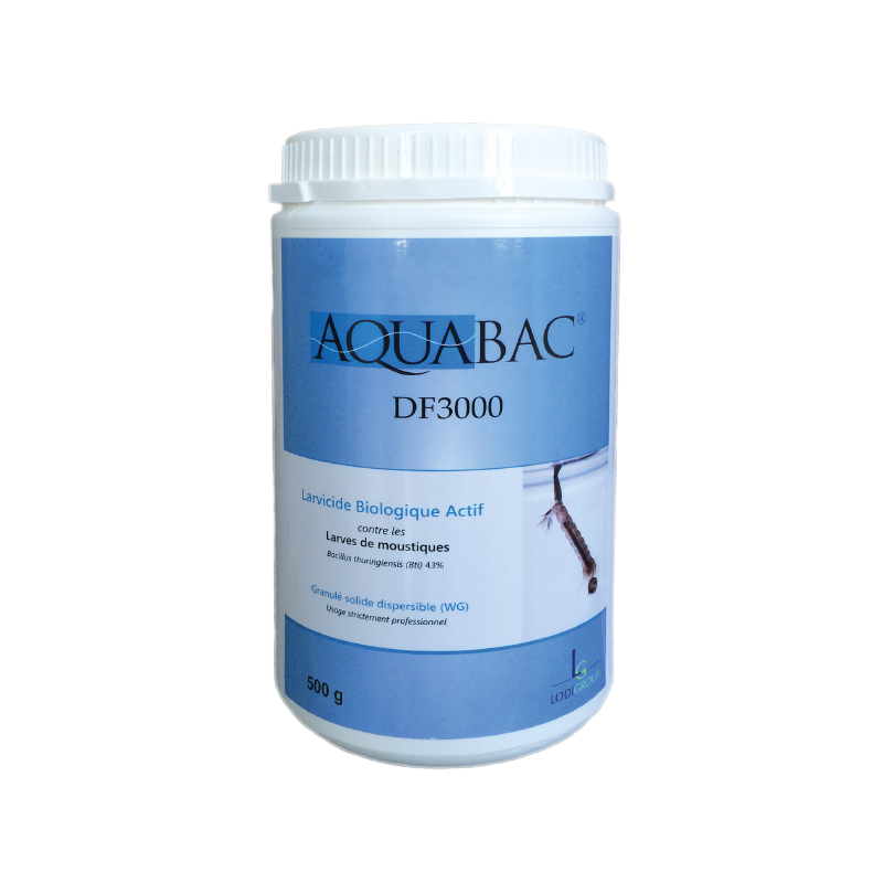 L'AQUABAC DF3000 agit par ingestion sur les larves de moustiques des genres Culex, Aedes (dont le moustique tigre) et Anophèles. Sa très haute concentration en matière active (3000 UTI/mg) garantit une efficacité maximale dès l'application sur les zones d'eau stagnante.