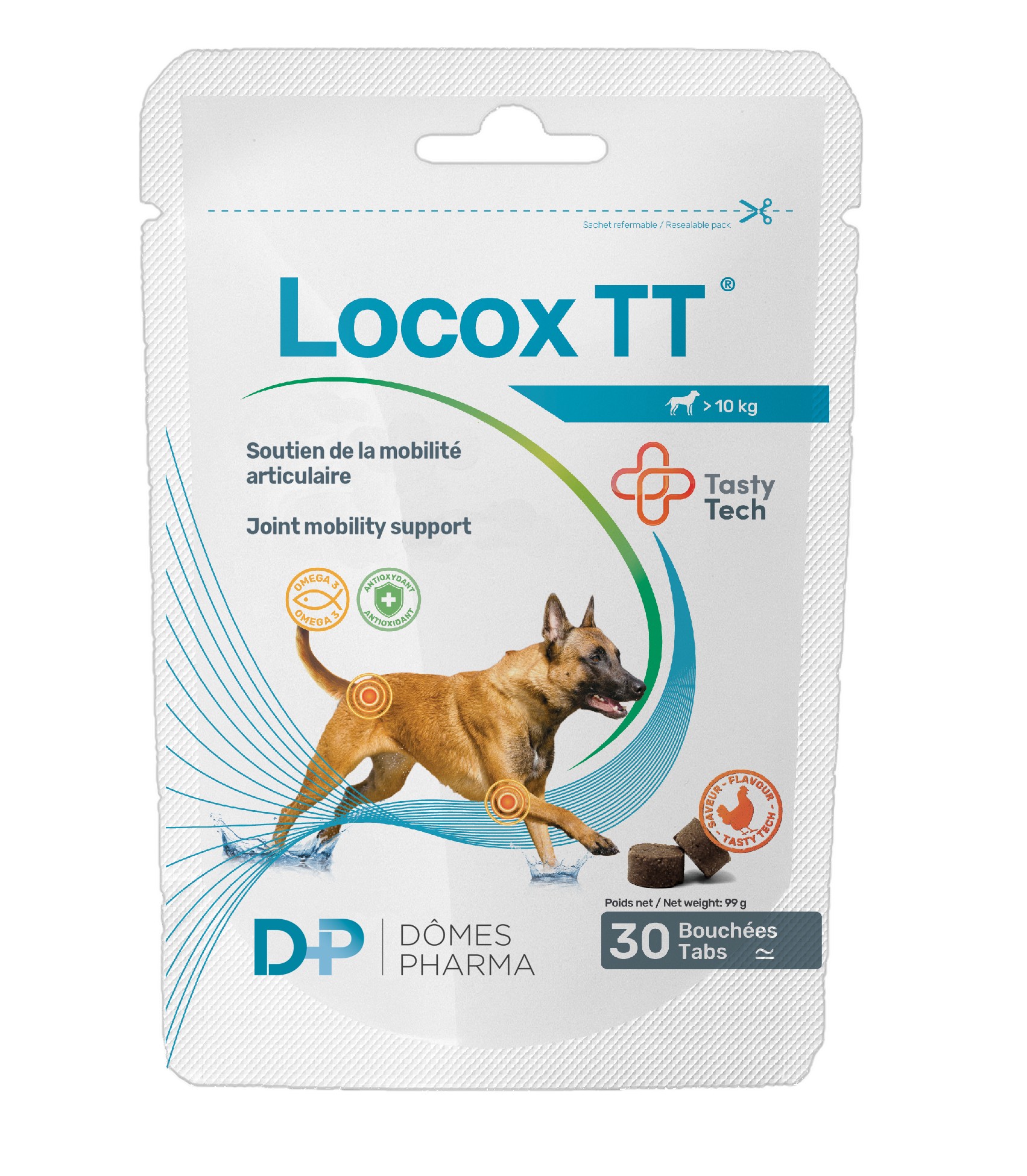 Développé par TVM – Dômes Pharma, Locox TT est une évolution moderne du célèbre Locox, sous forme de bouchées savoureuses, facilitant l’administration quotidienne.