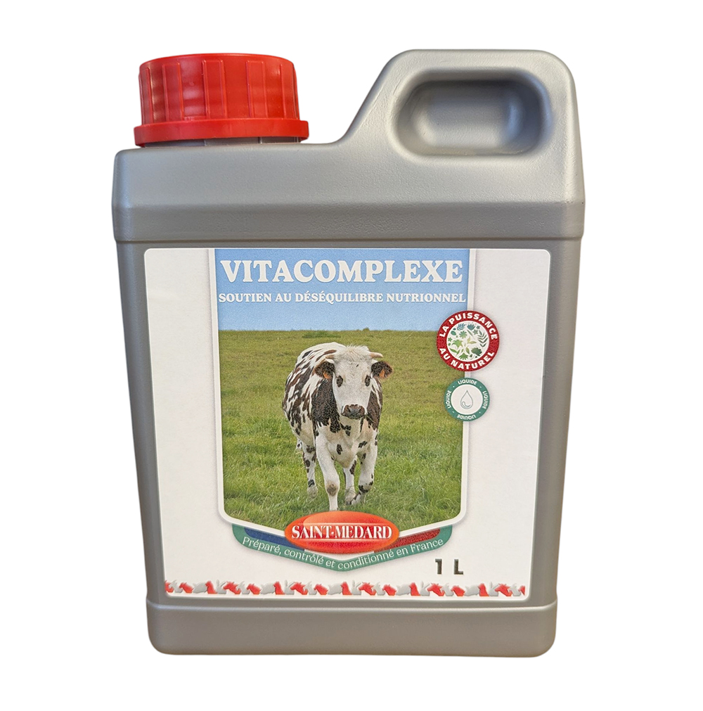 Le Vitacomplex 1L est un aliment complémentaire formulé pour répondre aux besoins nutritionnels des animaux de rente et de compagnie en période sensible (croissance, reproduction, lactation, tarissement, convalescence).
