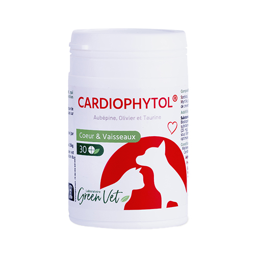 Avec l'âge, le cœur de nos compagnons peut montrer des signes de fatigue (essoufflement, toux, baisse d'activité). Cardiophytol est un aliment complémentaire développé par le laboratoire français Green Vet, spécialiste de la phytothérapie vétérinaire, pour accompagner le vieillissement cardiaque en douceur.