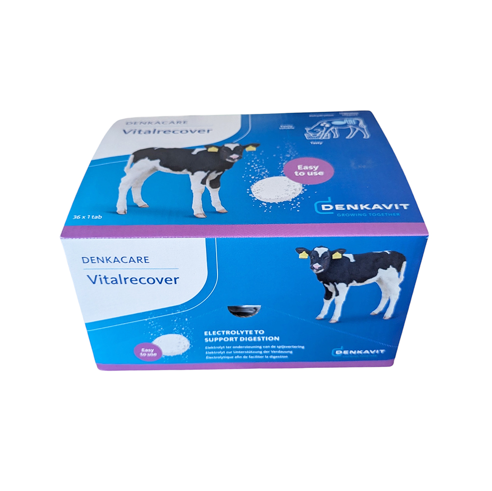 DENKACARE Vitalrecover est un aliment complémentaire diététique sous forme de galets effervescents conçu pour réhydrater rapidement les veaux souffrant de troubles digestifs ou de diarrhée. Sa formule pratique et hautement appétente permet de limiter la déshydratation tout en soutenant la vitalité et la croissance des jeunes animaux pendant leurs phases de fragilité.