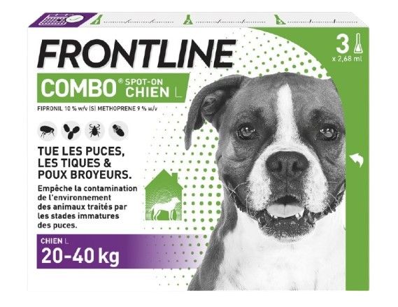 Assurez une protection optimale à votre grand chien avec Frontline Combo Chien L. Spécialement dosé pour les chiens de 20 à 40 kg (type Labrador, Boxer, Golden Retriever), ce traitement offre une double sécurité : il élimine les parasites sur l'animal et assainit votre environnement en stoppant le développement des œufs et larves de puces.
