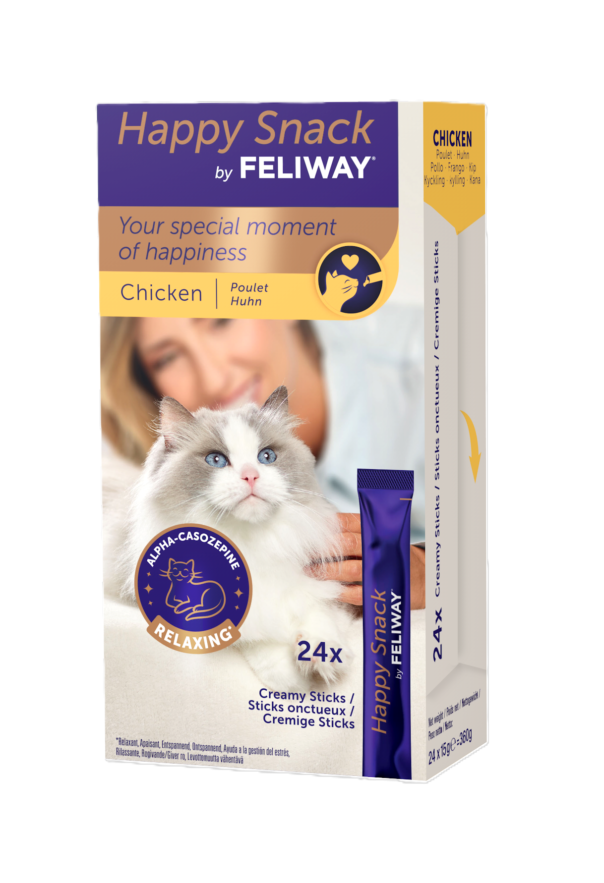 Est-ce que cela remplace le diffuseur FELIWAY ? Happy Snack est un excellent complément aux diffuseurs FELIWAY. Alors que le diffuseur agit sur l'environnement via les phéromones, le stick agit directement par ingestion pour un apaisement ponctuel ou routinier renforcé par le contact humain.