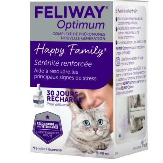 La recharge Feliway Optimum 48 ml permet de prolonger l’action apaisante du diffuseur pendant 30 jours.