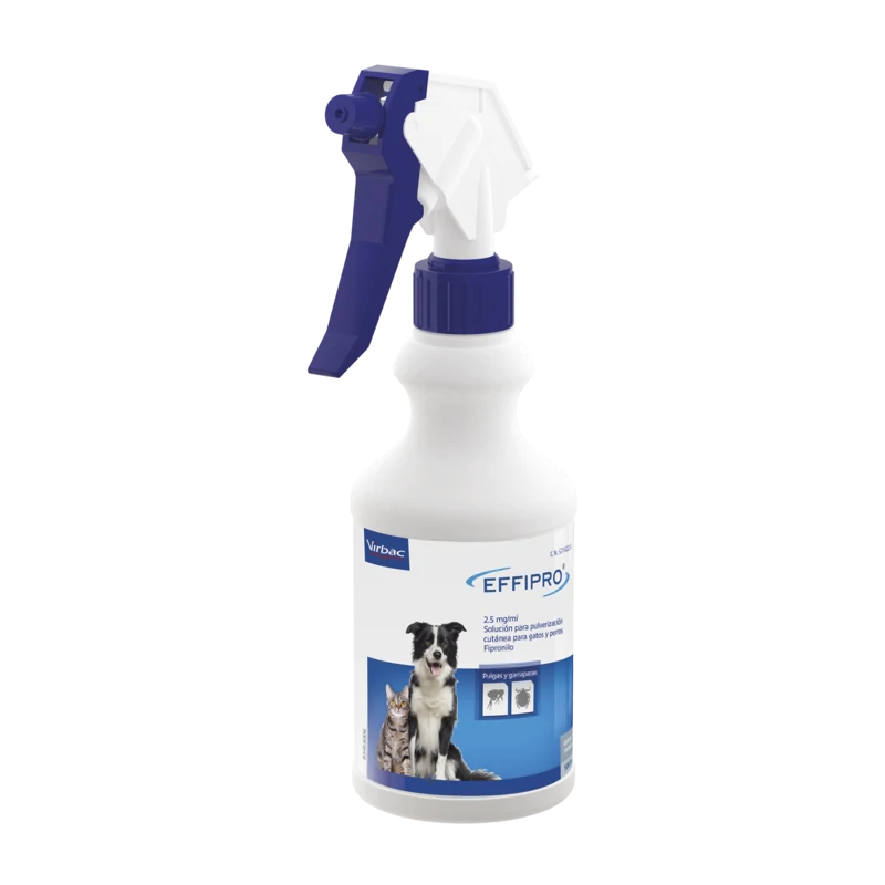 Effipro Spray 500 ml Virbac est un traitement antiparasitaire à base de fipronil, efficace contre les puces, tiques et poux piqueurs chez le chien et le chat.