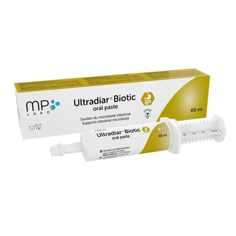 Le format 60 ml d'ULTRADIAR Biotic est le conditionnement le plus économique de la gamme, conçu pour les chiens de grande et très grande taille (plus de 40 kg) ou pour le traitement simultané de plusieurs animaux. Cette seringue grand volume permet de traiter efficacement les troubles digestifs et de restaurer la flore intestinale sans tomber en rupture de produit au milieu du traitement.