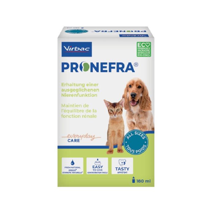 Pronefra de Virbac est une solution liquide appétente formulée pour soutenir la fonction rénale du chien et du chat.