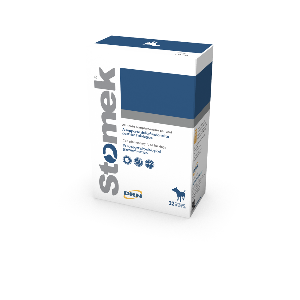 Stomek de DRN est un complément diététique vétérinaire spécialement formulé pour soutenir la santé de l’estomac et la fonction digestive du chien.