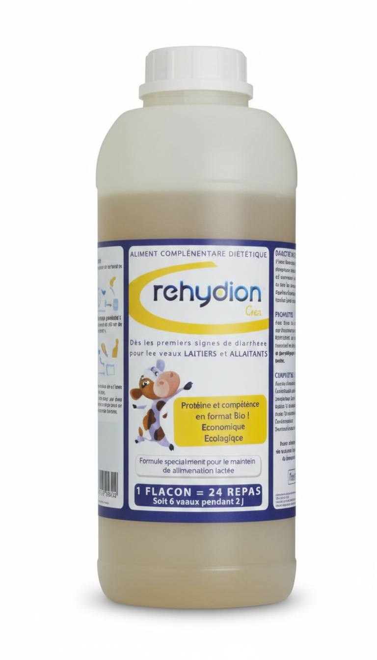 Pourquoi utiliser Rehydion Gel plutôt qu'un sachet de poudre classique ? Rehydion Gel permet de maintenir l'apport énergétique du lait tout en réhydratant le veau. Son format liquide est plus rapide à mélanger et son conditionnement en flacon est souvent plus économique pour les élevages de taille moyenne à grande.
