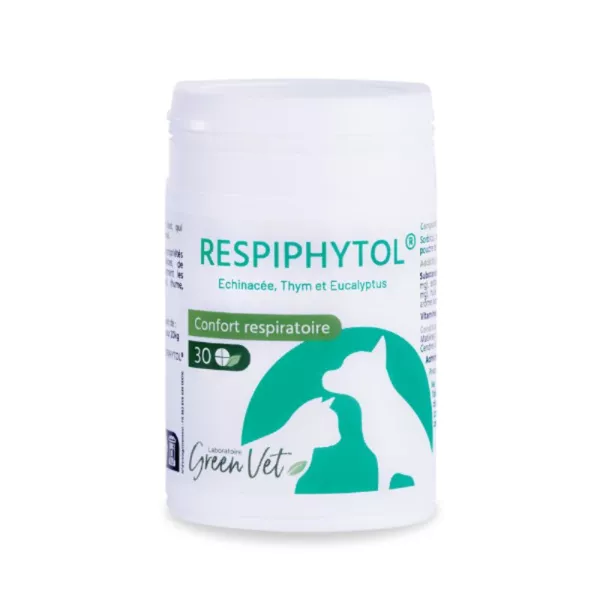 Respiphytol est un complément à base de plantes (échinacée, thym, eucalyptus) destiné au confort respiratoire des chiens et chats.