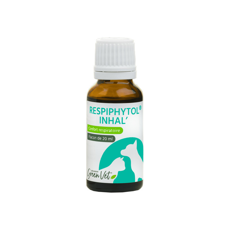 Respiphytol Inhal’ est une solution respiratoire naturelle à diffuser ou inhaler, pour aider à dégager les voies respiratoires, calmer la toux et faciliter la respiration du chien et du chat.