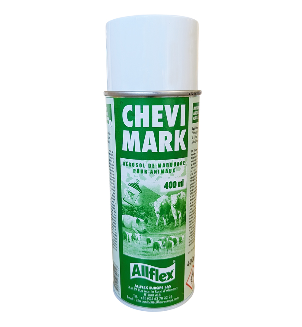 La Bombe de marquage CHEVIMARK Vert est un aérosol de haute qualité pour l'identification temporaire des animaux d'élevage. Fabriquée par Chevillot, elle offre une couleur verte intense parfaite pour différencier les lots (ex: animaux à vendre, à mettre au pâturage). Elle garantit un marquage net, à séchage rapide et durable sur tous types de supports (poils, laine, peau).