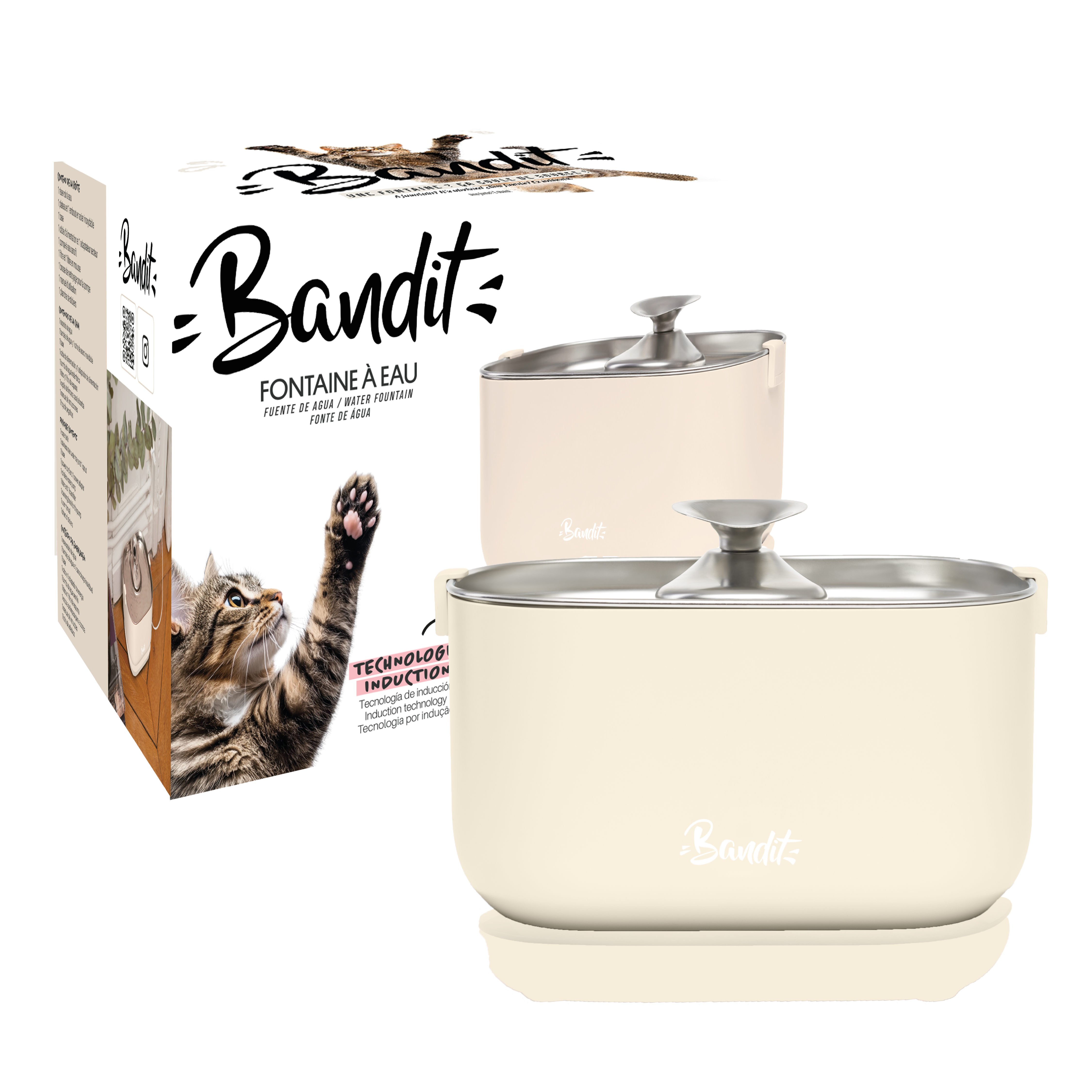 La Fontaine à eau Filaire Bandit (Coloris Crème) assure une hydratation saine et constante à votre animal de compagnie. Branchée sur secteur, elle délivre une eau filtrée et oxygénée en continu, stimulant l'envie de boire des chats et petits chiens. Son design beige crème intemporel et son plateau en acier inoxydable hygiénique en font un accessoire aussi pratique qu'esthétique.