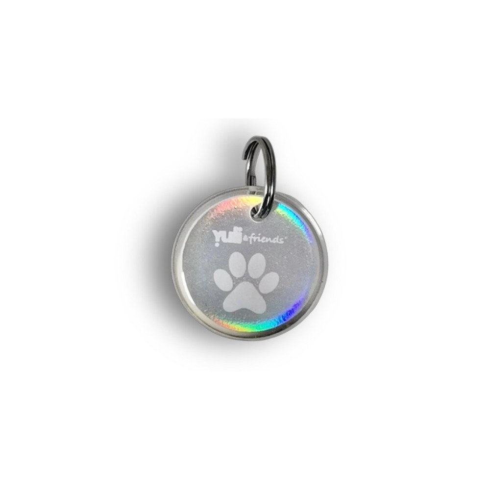 Pourquoi choisir entre esthétique et protection ? La médaille Yuli en finition Holographique capte la lumière avec ses reflets changeants, rendant votre animal plus visible, tout en embarquant son identité numérique complète. Fini les médailles gravées illisibles : place à l'identification intelligente.